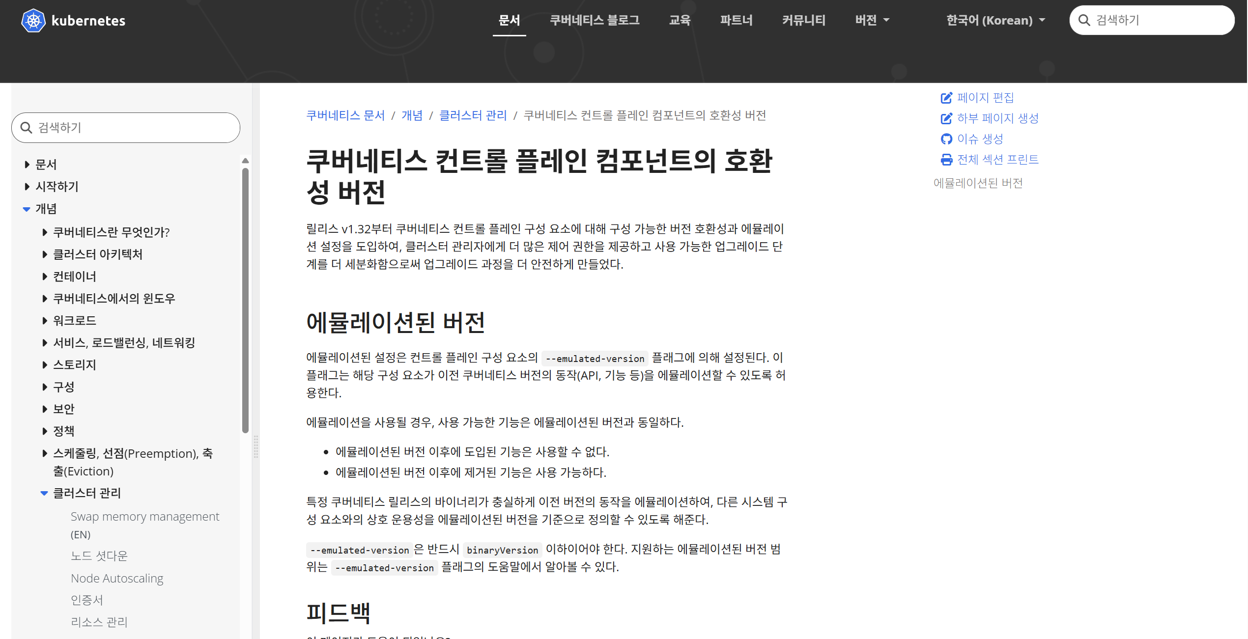 한번쯤은 모두들 들어가봤을 공식 문서다. https://kubernetes.io/ko/