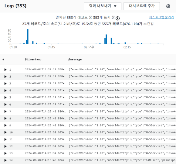 S3 aws-cloudtrail-logs에 관한 버킷이 24.5.31 생성되어 쌓이고 있다.