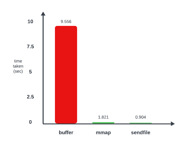 도식에 따르면, mmap()으로 81% 성능 향상과 sendfile()로는 91%의 향상이 있다고 한다.