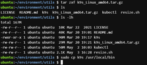 gz 압축파일 풀어주고 sudo cp k9s /usr/local/bin로 k9s 명령어를 어디서든지 가능하게 설정해두면 편하다