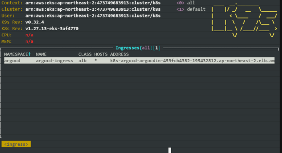 Argo 도구까지 설치해서 Ingress의 Address가 잘 나오는 것을 확인했다.