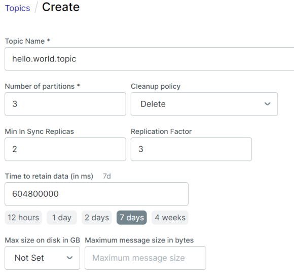 - acks=0 : 발행시 확인받지 않음 (속도빠름)