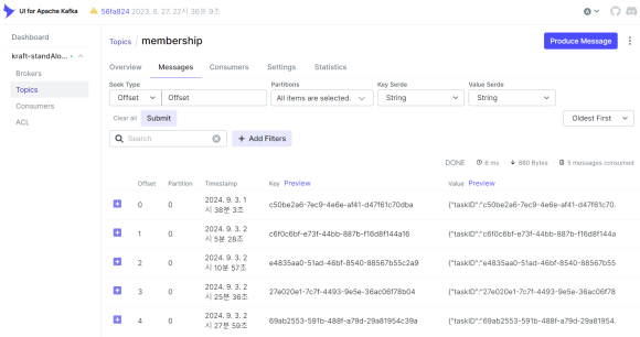 Kafka를 통해 membership 서비스로부터 요청한 Task의 결과를 제대로 전송했음에도 말이다!
