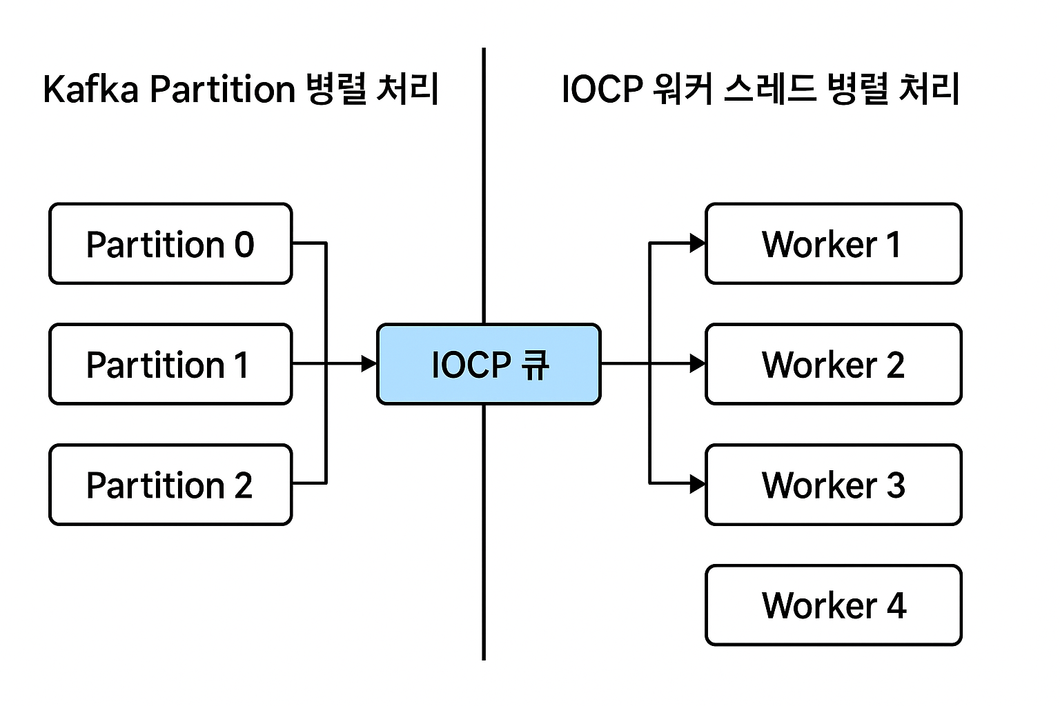Reactor 환경에서는 Spring WebFlux와 Reactor-Kafka를 활용해 Kafka 메시지를 Flux 스트림으로 자연스럽게 처리하는 것이 익숙하다. 하지만 Proactor 환경에서는 Kafka를 어떻게 처리할까? 이번 글에서는 C++ 게임 서버에서 Kafka Consumer를 IOCP 이벤트 루프에 통합했던 경험을 공유한다. 1. OS가 어디까지 처리하는지에 따라서 구분한다.데이터가 소켓 버퍼에 수신되면 OS가 수신 이벤트를 전달(reactor)하거나, 나아가서 OS가 직접 IO 작업까지 하고 완료 결과를 통보(proactor)하여서 비동기적으로 IO 멀티플렉싱을 진행한다. 쉽게 설명해서 IO 멀티플렉싱은 읽을 데이터가 왔을때 작업하는 Reactor와 실제 작업이 완료되면 통보받는 Pro..