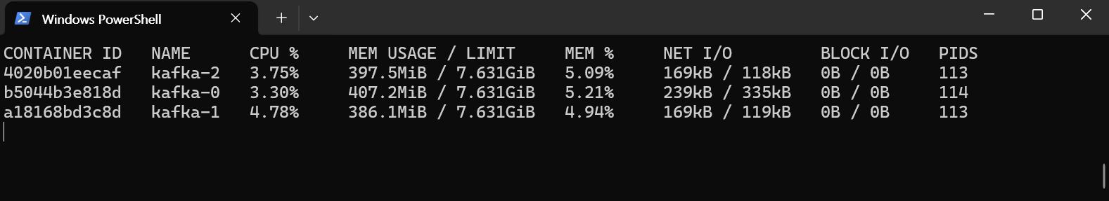 - 브로커 개수: 3개 (kafka-0, kafka-1, kafka-2)